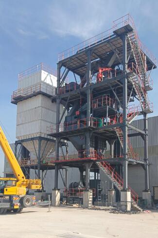 原料經(jīng)過(guò)電子秤進(jìn)入到皮帶輸送機(jī)中,由全封閉的提升機(jī)將物料入到五孔碾磨制砂機(jī)內(nèi)進(jìn)行破碎處理,再由空氣篩對(duì)破碎后的物料進(jìn)行篩分、選粉處理,篩分后的較大物料會(huì)返回五孔碾磨制砂機(jī)中進(jìn)行二次破碎,符合要求的砂子則經(jīng)過(guò)加濕拌合機(jī)由傳送帶輸送至成品倉(cāng)中;篩分過(guò)程中的粉塵會(huì)經(jīng)粗細(xì)粉分離機(jī)進(jìn)入到布袋收塵器內(nèi),而其中較大的粗顆粒會(huì)在粗細(xì)粉分離機(jī)的作用下,按需求在成品砂中進(jìn)行回?fù)?,?xì)粉塵將通過(guò)風(fēng)力進(jìn)入到布袋收塵器,作為副產(chǎn)品進(jìn)行使用。